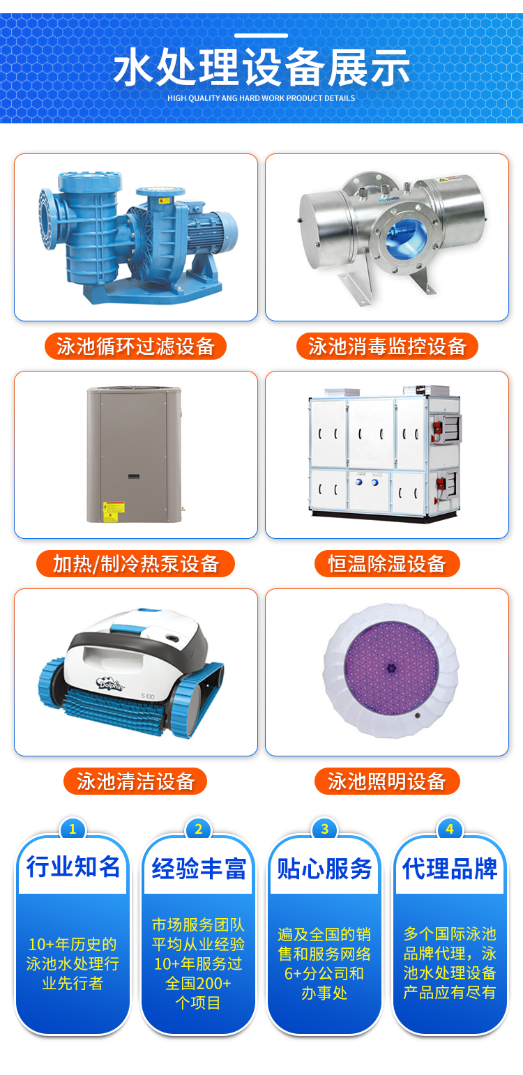 4.防腐材質的清潔附件:可以有效地清潔泳池側壁和底部,不會對泳池造成損害。